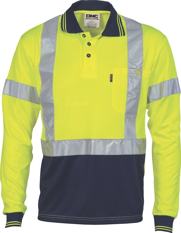 3914; DNC Workwear Hi-Vis D/N Cool Breathe L/S Polo With Cross Back R/Tape