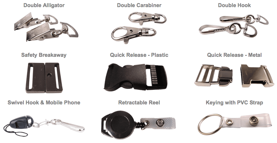 Our Lanyards include one standard attachment: