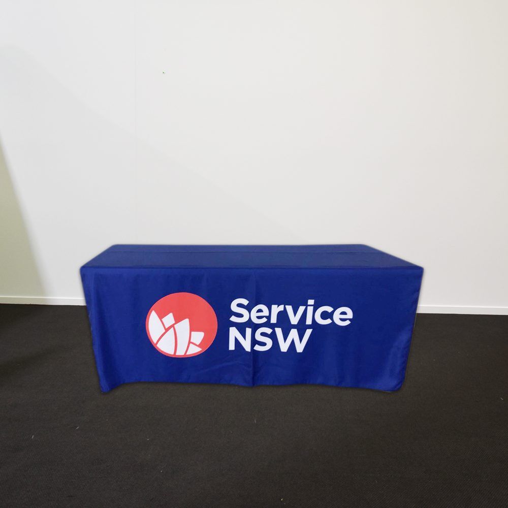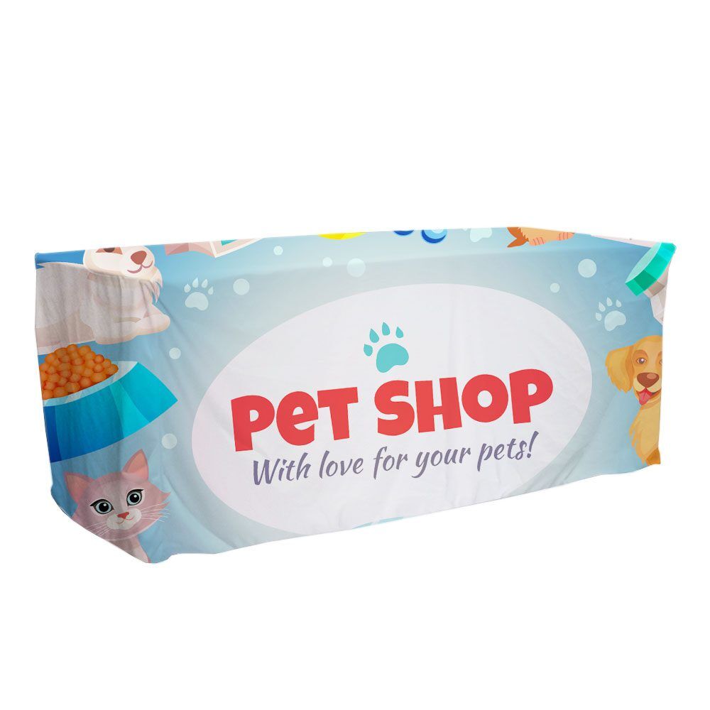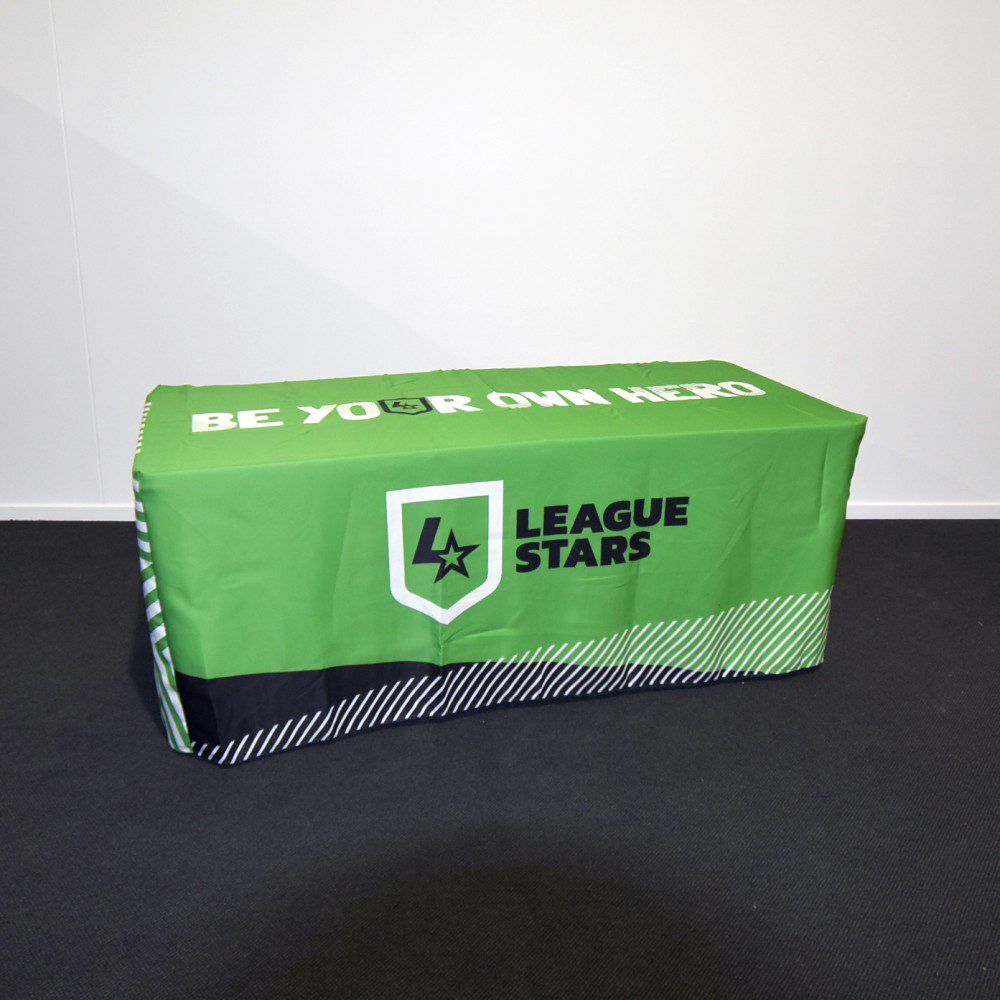 Our digitally printed fitted table covers are printed with only the best UV treated inks using our PMS colour chart. fully hemmed on all sides and using a thick 800D material that let’s no light pass through it. The amount of colours or complexity of your design or artwork does not affect the price – this is a full colour digital print process as opposed to screen printing which is priced per colour and other variables.