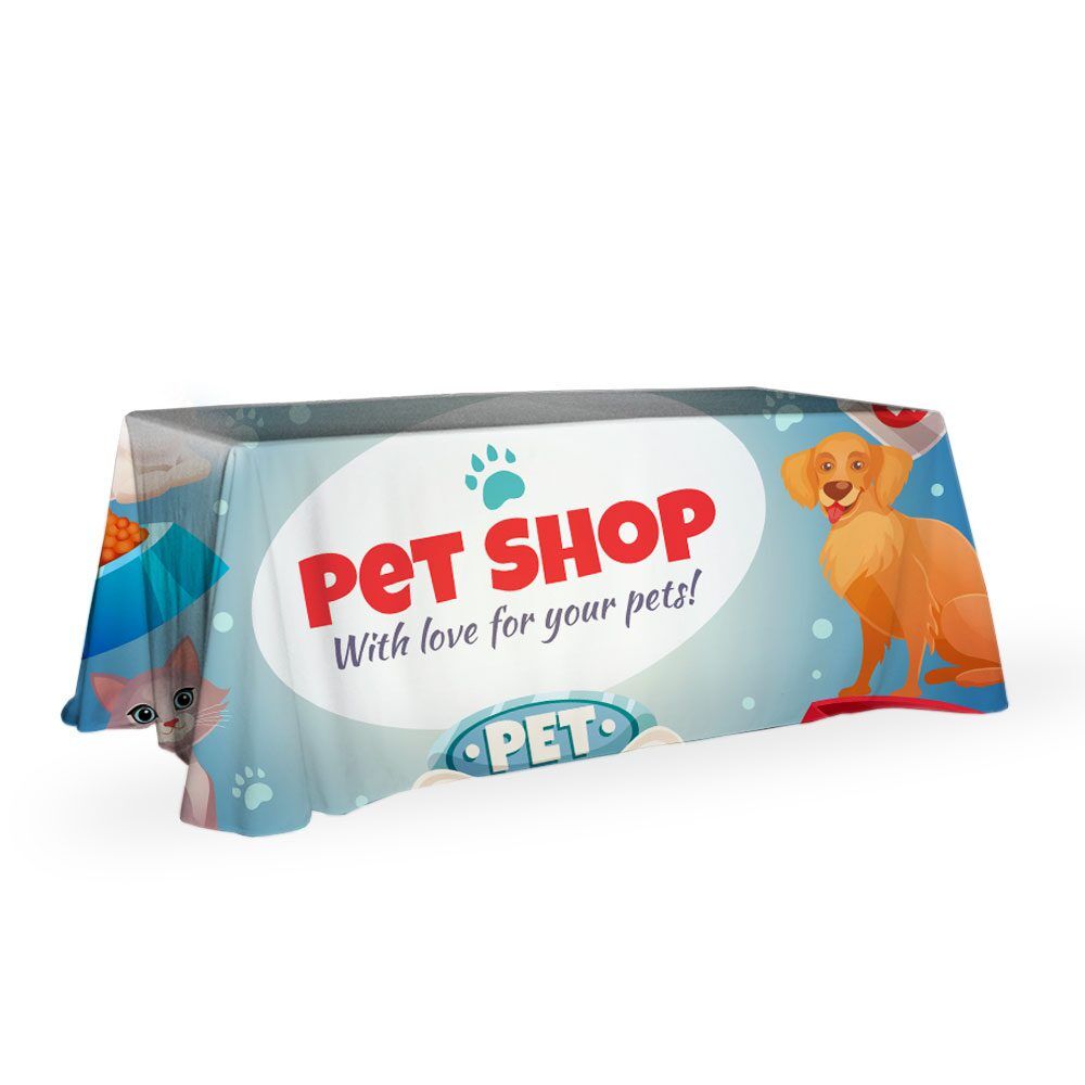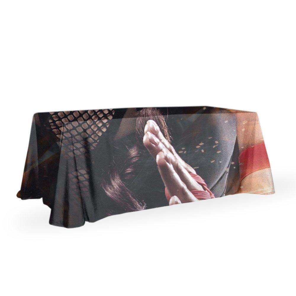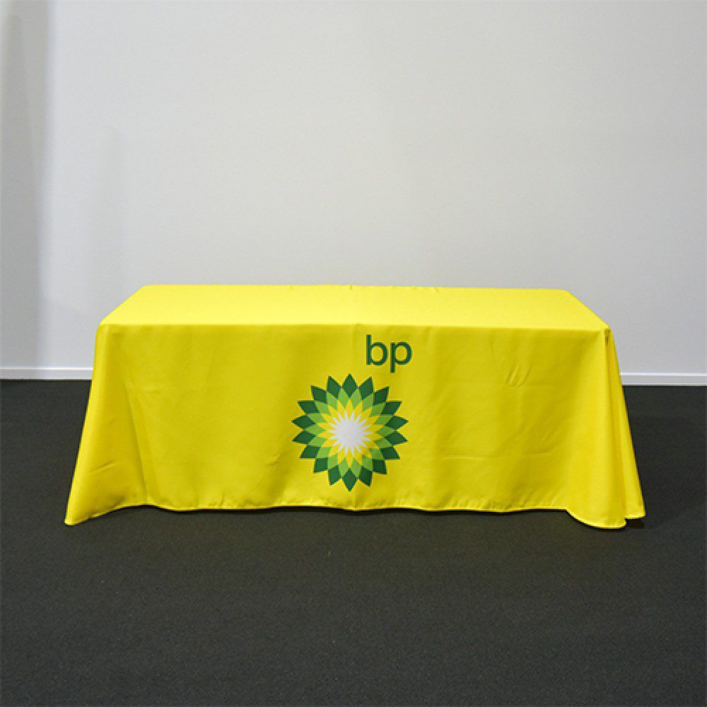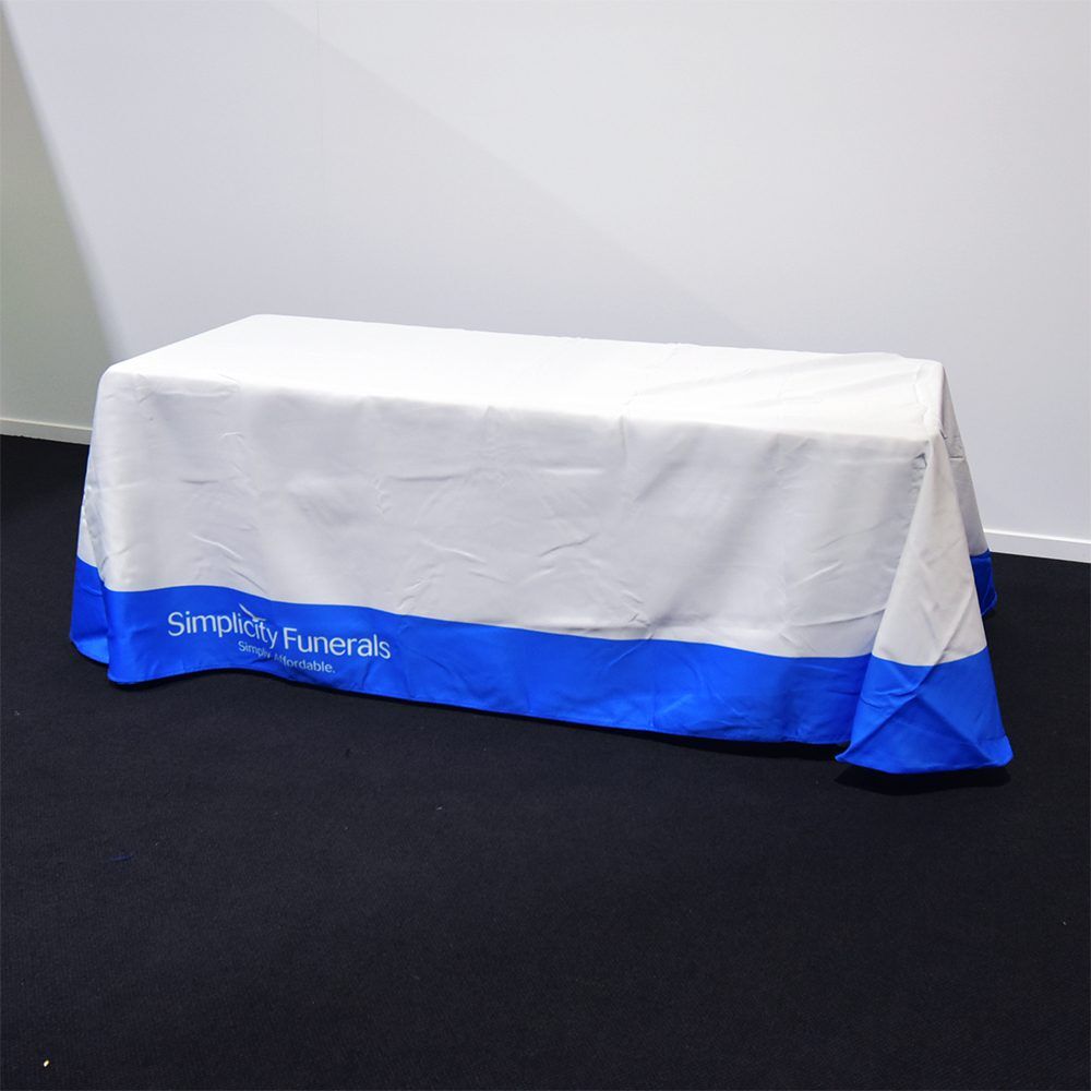 Our digitally printed throw style table covers are printed with only the best UV treated inks using our PMS colour chart. fully hemmed on all sides and using a thick 800D material that let’s no light pass through it. The amount of colours or complexity of your design or artwork does not affect the price – this is a full colour digital print process as opposed to screen printing which is priced per colour and other variables.