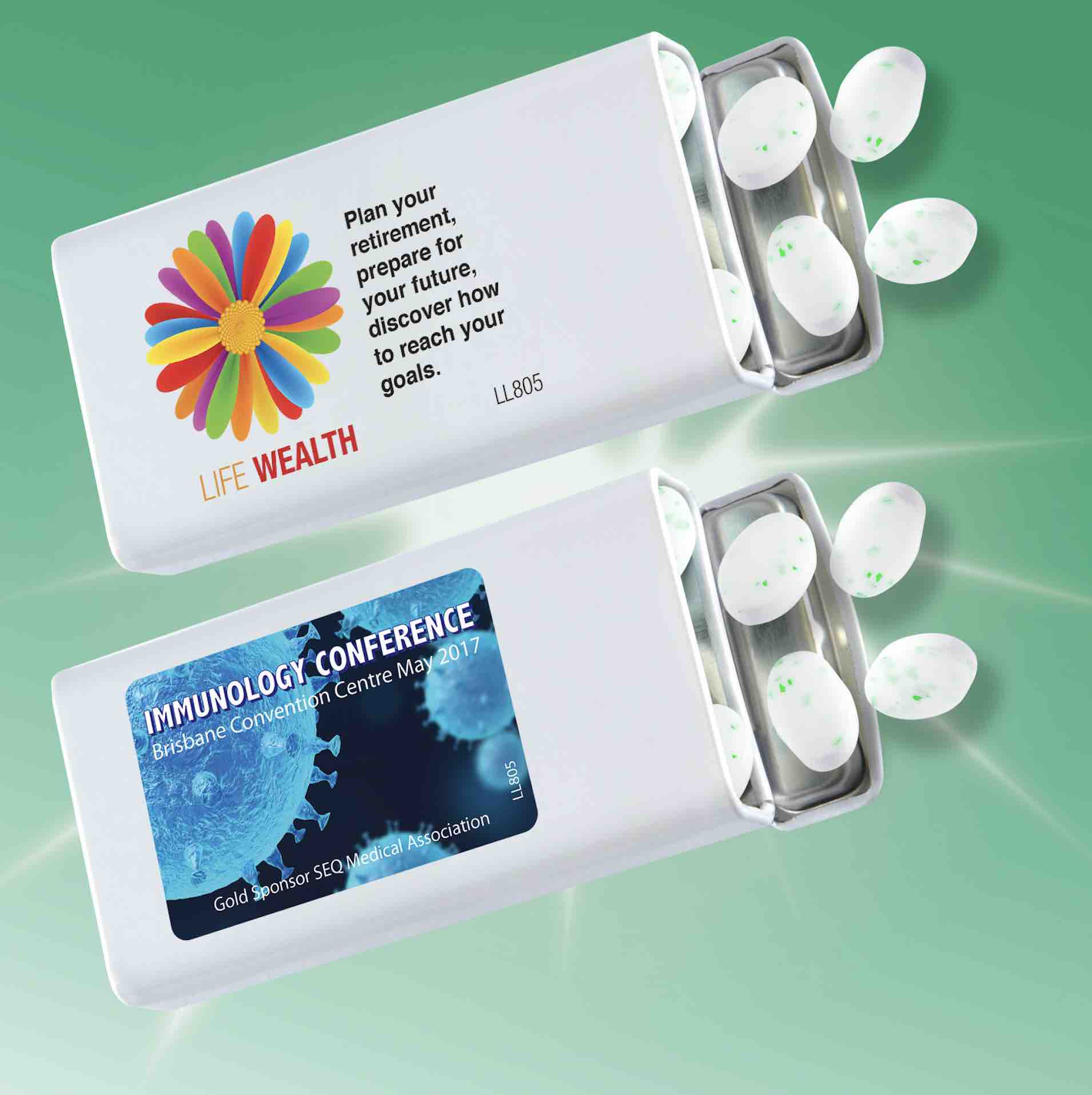 Large refreshing sugar free spearmints in flip top tin. 25g of mints.