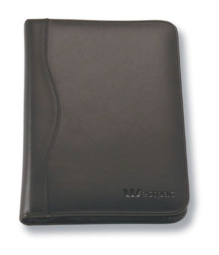 884BK; A4 Leather Zippered Compendium 884BK