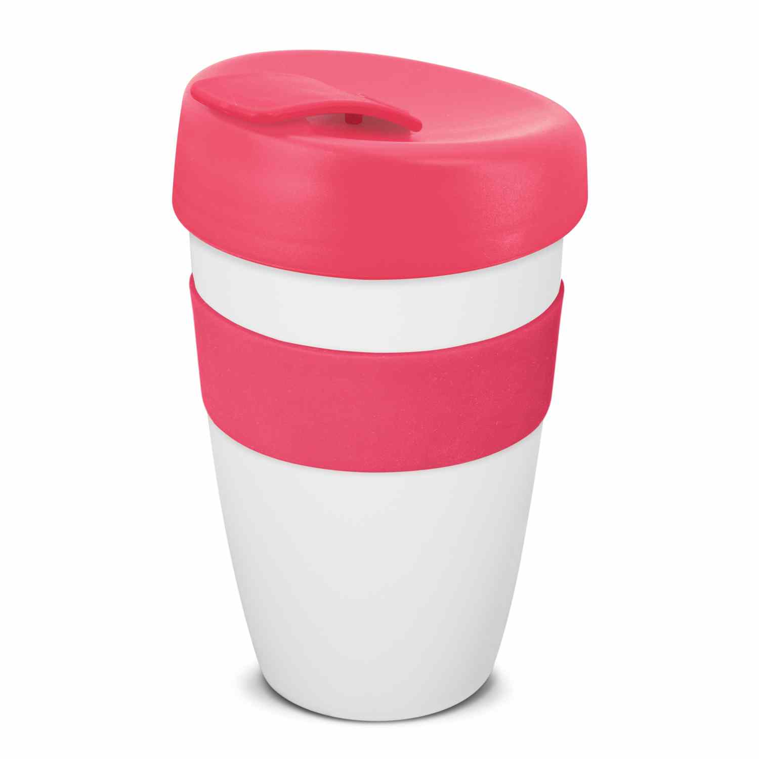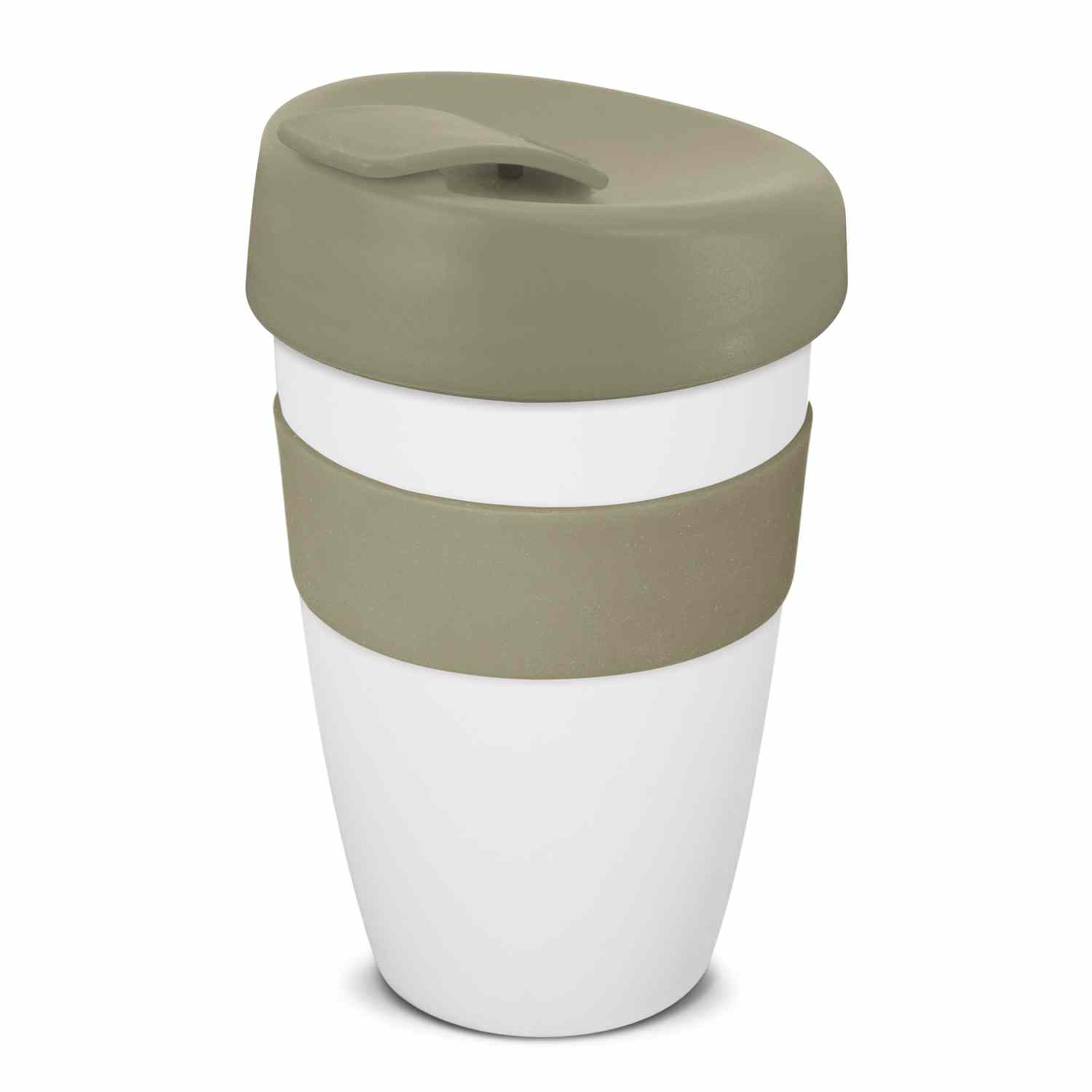 Large 480ml reusable coffee cup with a heat-resistant silicone band and a secure screw on lid with a splashproof flip closure. It is manufactured from polypropylene which is shatterproof, odour-resistant and BPA-free. The cup, lid, flip closure and silicone band can be mixed and matched in any colour combination from the standard colours at no extra cost. Up to five different colour combinations are included in the price and more are available for an additional charge. An optional natural gift box is available on request. This product is not dishwasher safe and handwashing is recommended. Express Cup Deluxe is protected under New Zealand Design Registration No. 419451 and Australian Design Registration No. 361937.