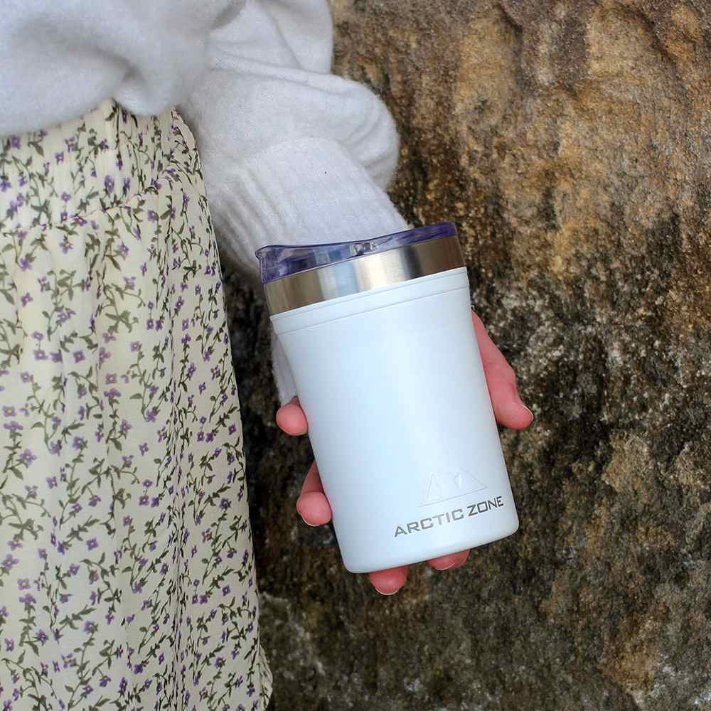 Enjoy a beverage by drinking through the push-on lid with slide closure, or place a 355ml can inside the tumbler. You choose! Durable, double-wall stainless steel vacuum construction with copper insulation, which allows your beverage to stay cold for 24 hours and hot for at least 8 hours.