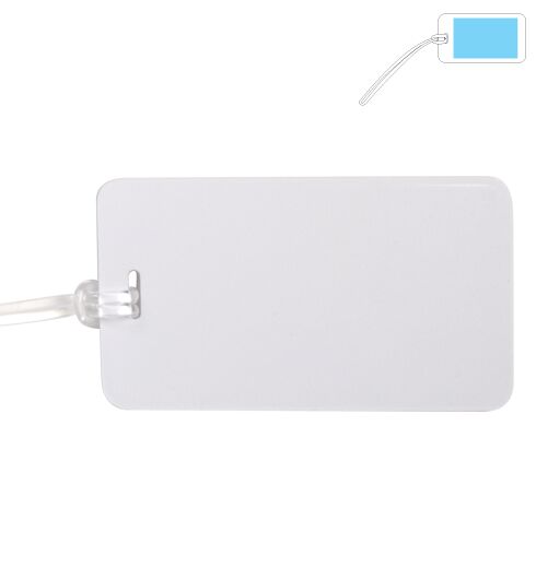 Luggage tag with clear PVC window and spaghetti loop strap.