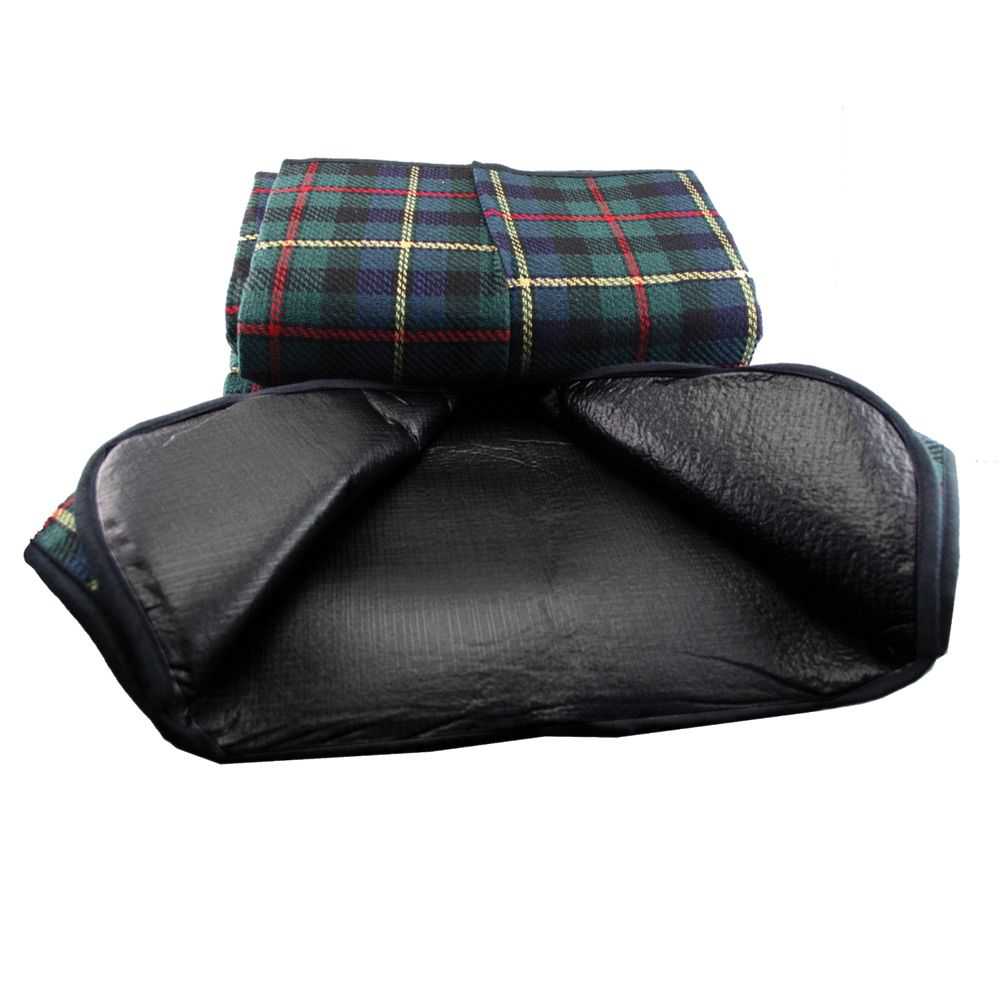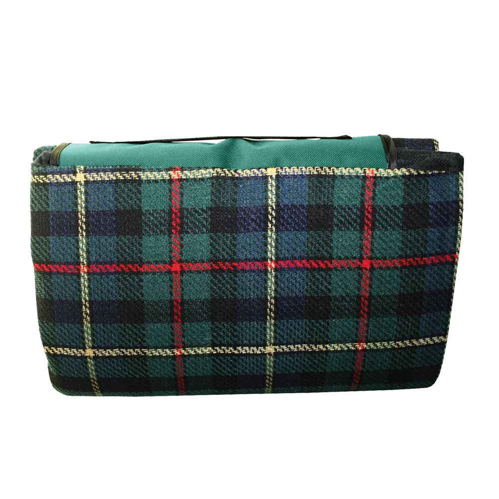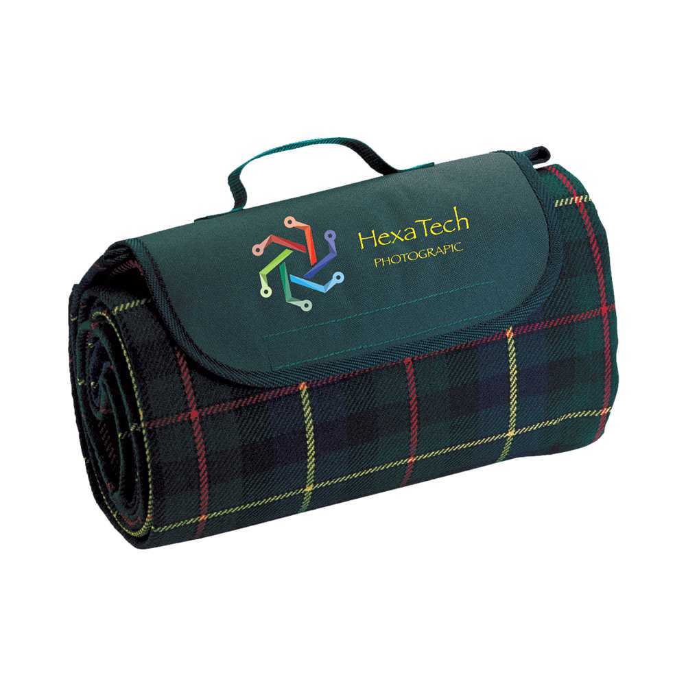 Perfect picnic accessory acrylic rug with PVC waterproof backing, velcro closure and carry handle.