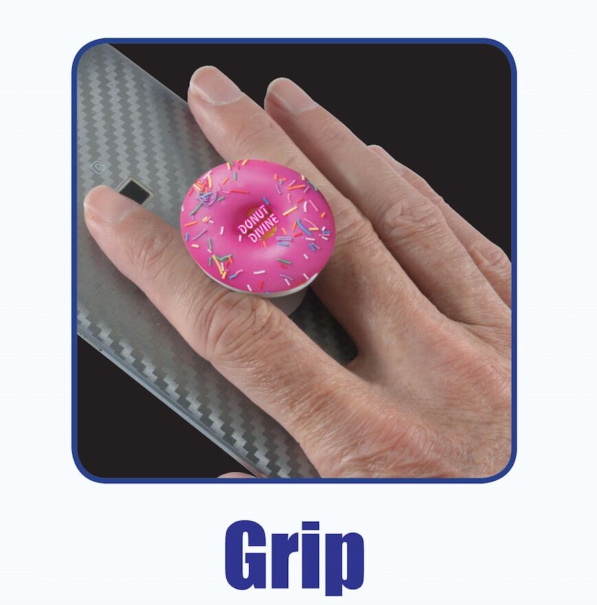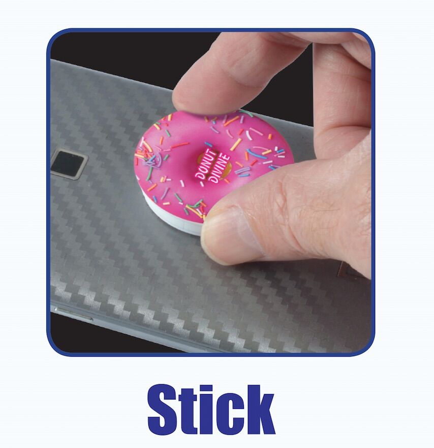Cool new expanding phone grip attaches easily to the back of your phone or case. Pop up when you need a grip, a media stand, a cord holder or just something to play with. Collapses flat. Strong adhesive holds your phone with comfortable grip makes using your phone easy. Suitable for most devices and cases. Optional dash mount available, attach it to your car dashboard, computer monitor or use around the house.