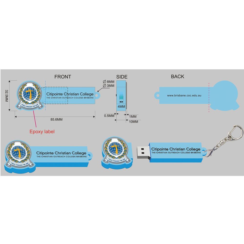 Custom 2D with Epoxy USB Flash Drive (Indent Only) Minimum order of 100pcs.